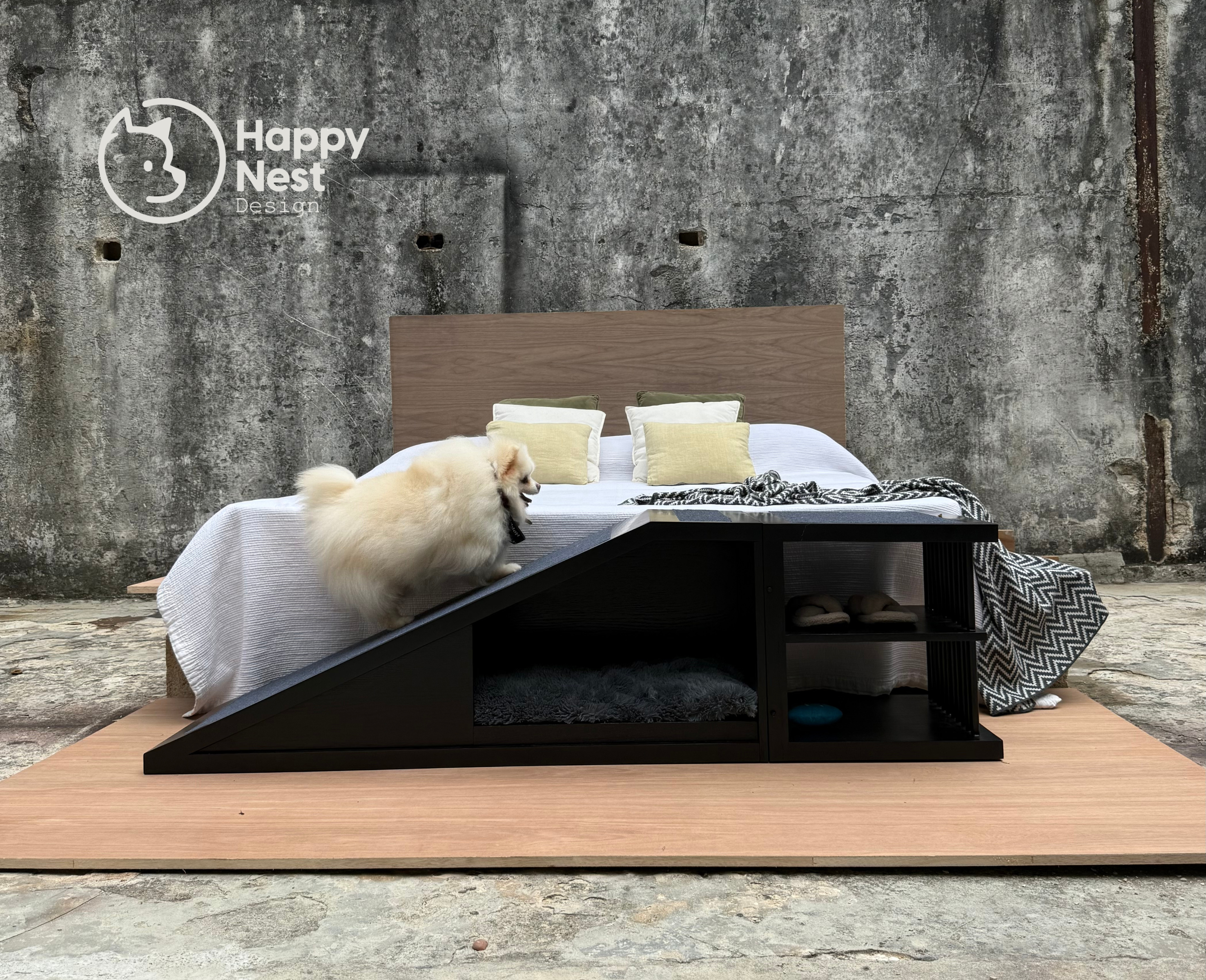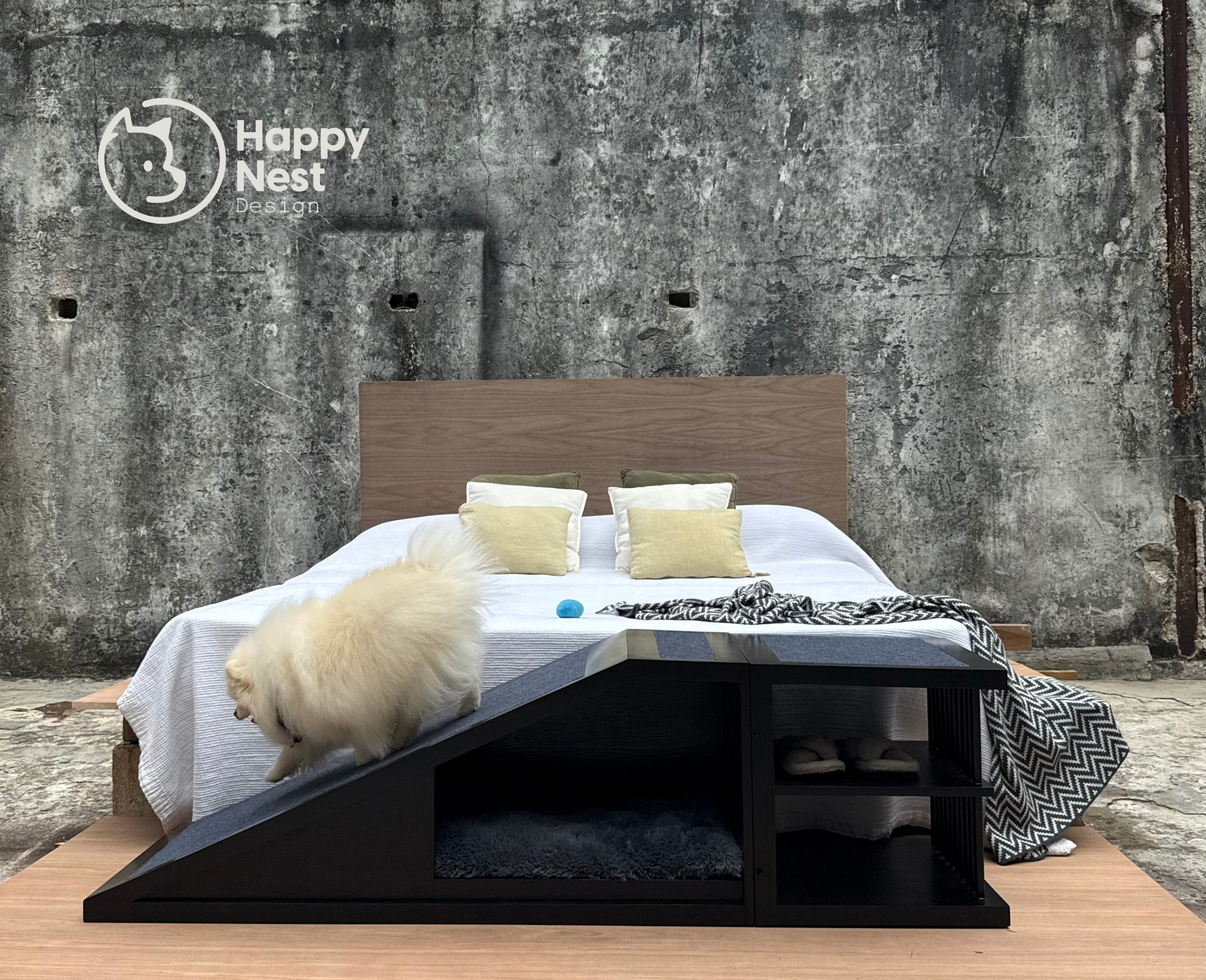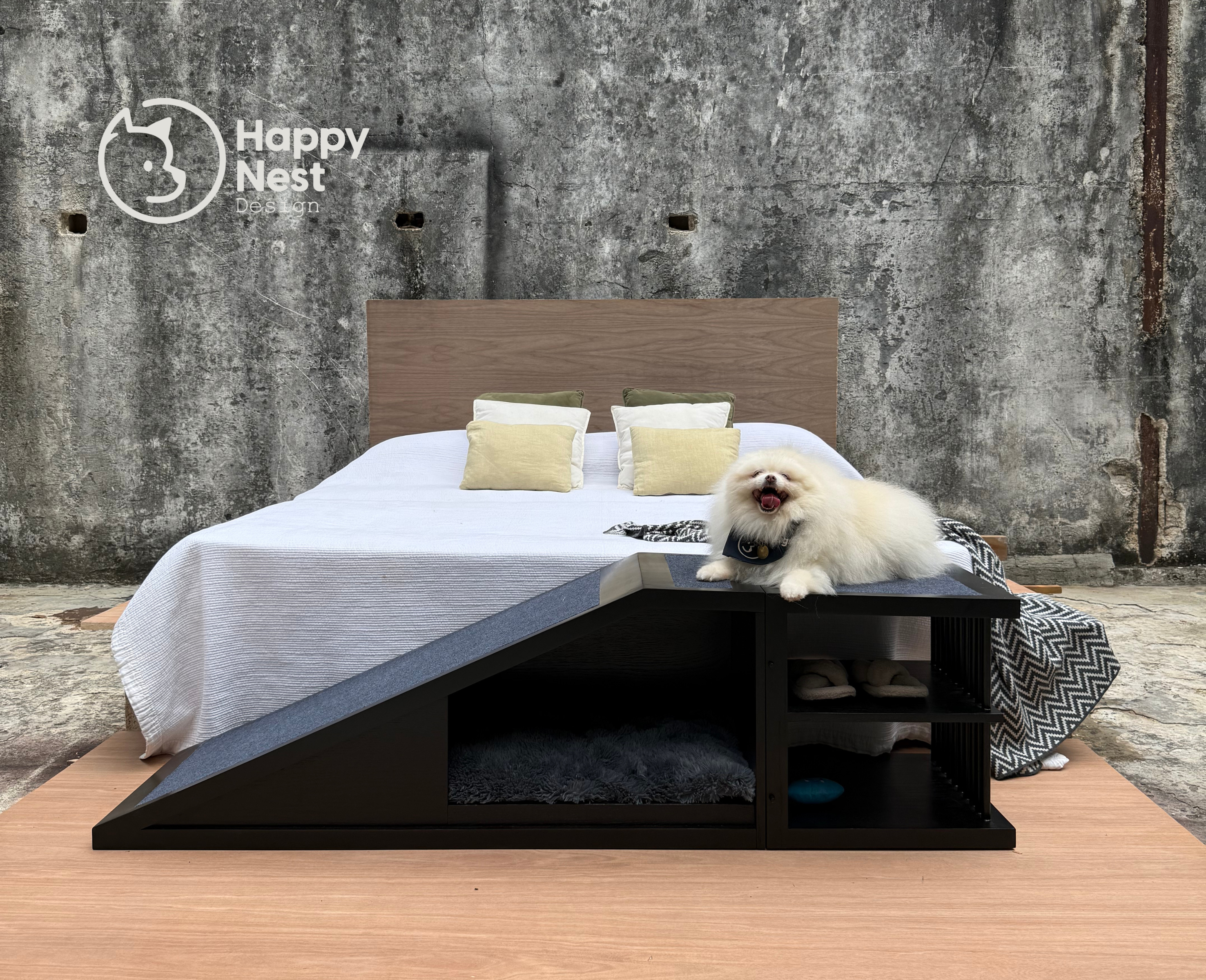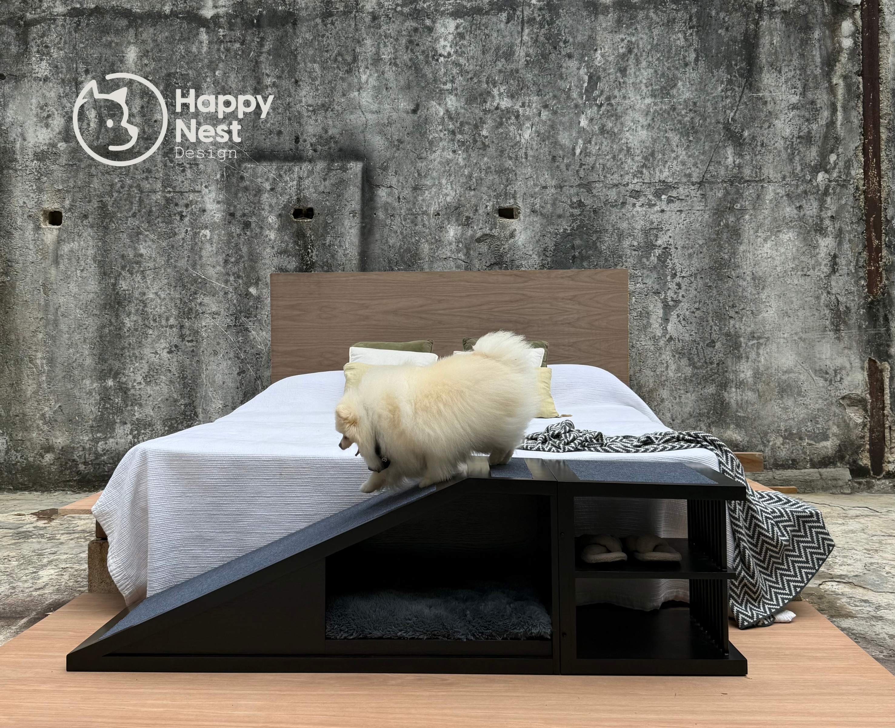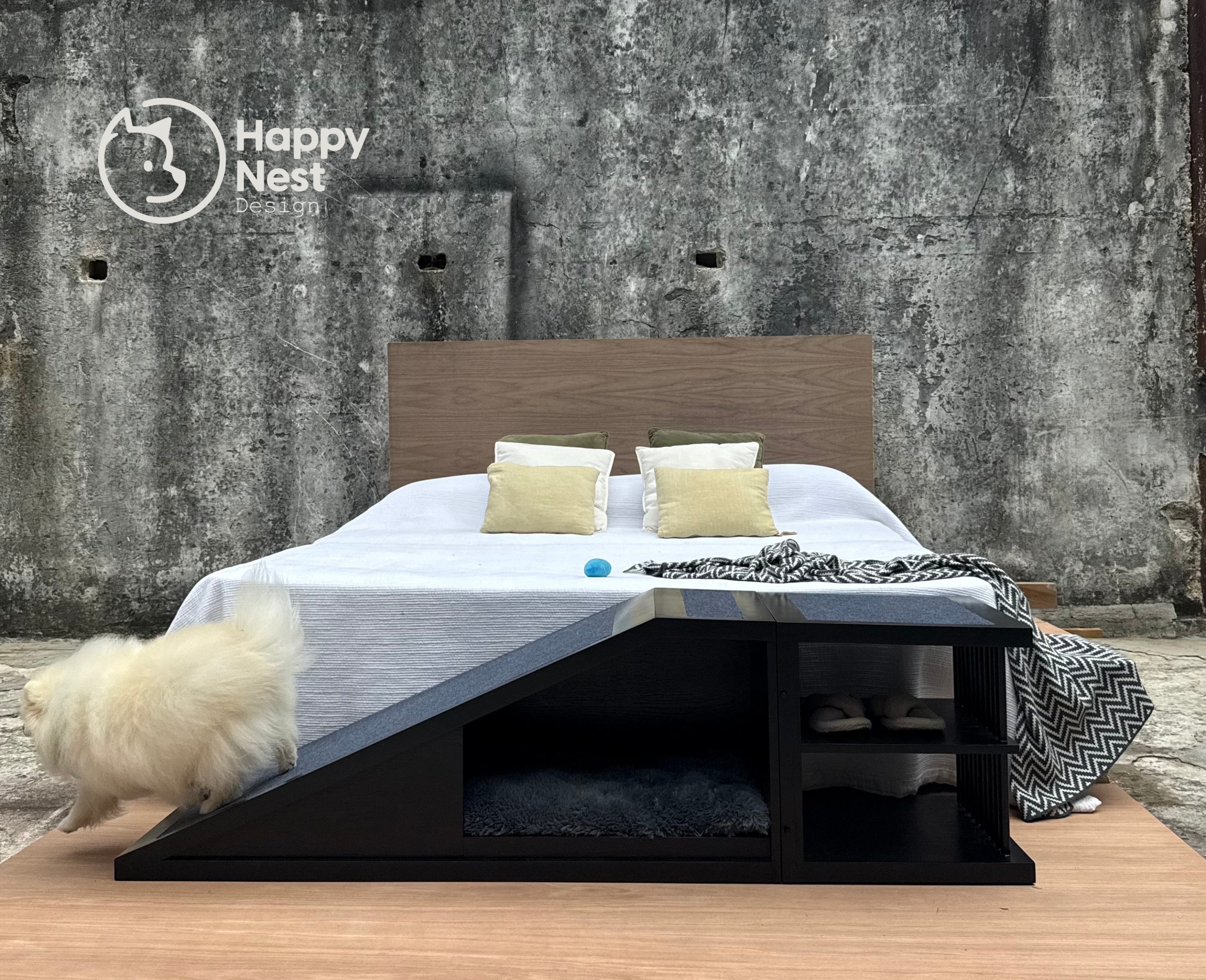 Ir a la TiendaEsta pieza es el mueble perfecto que complementará tu recámara. Funciona como una rampa para el frente de una cama King Size para que una mascota pueda subir y bajar a la cama sin listarme el lomo al brincar.